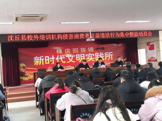12月23日上午,沈丘縣校外培訓機構侵害消費者權益違法行為集中整治動員會在槐店鎮(zhèn)召開。出席會議的有沈丘縣市場監(jiān)督管理局副局長李春華、教體局副局長李國峰、教體局安全辦主任劉志強等,各鄉(xiāng)鎮(zhèn)培訓機構負責人參加會議,會議由槐店鎮(zhèn)鎮(zhèn)長李傳勝主持。
