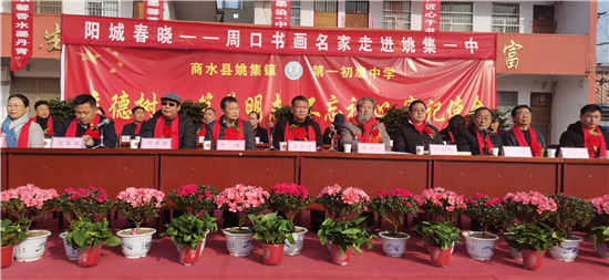 12月25日,商水縣文聯(lián)邀請(qǐng)書(shū)畫(huà)家走進(jìn)商水縣姚集一中開(kāi)展“陽(yáng)城春曉---周口書(shū)畫(huà)名家進(jìn)校園”活動(dòng)??h政協(xié)主席孫培忠,縣人大常委會(huì)副主任李峰、原縣政協(xié)副主席司新國(guó)、縣教體局局長(zhǎng)鄭春來(lái)、縣文聯(lián)主席劉秋玲出席活動(dòng)。
