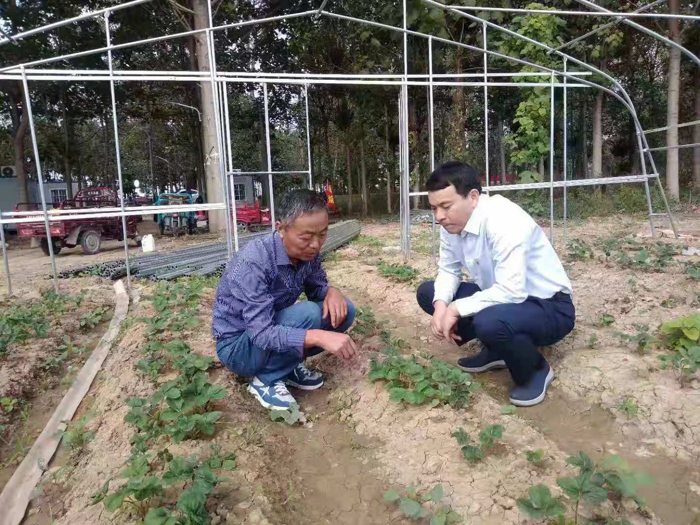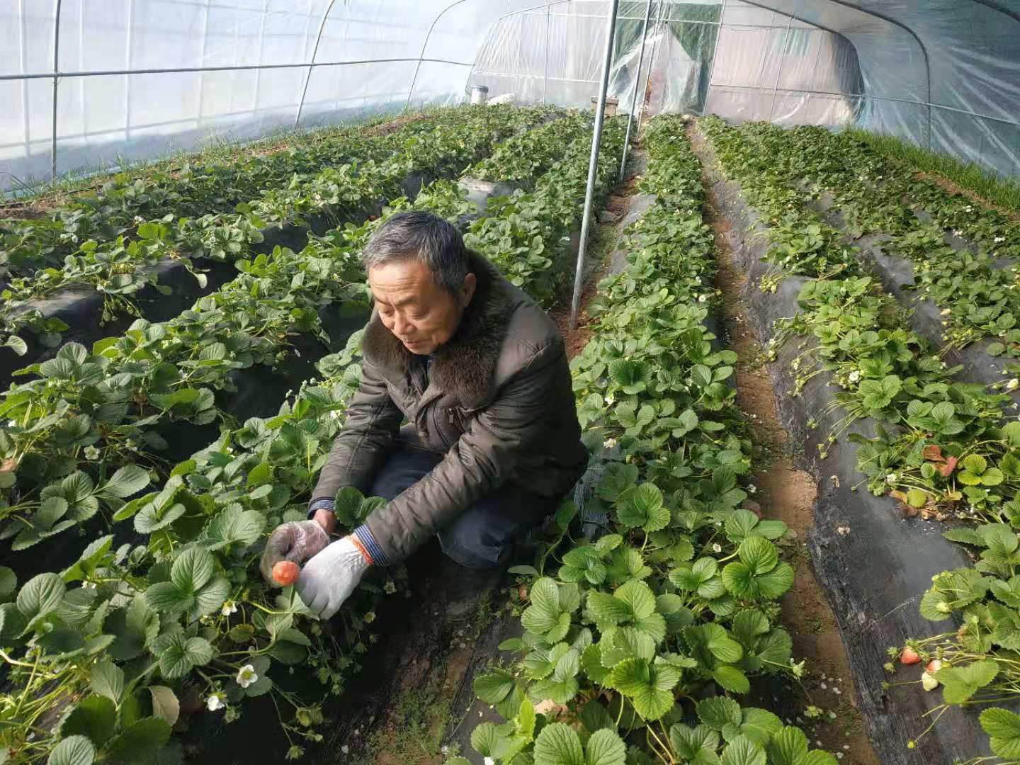 朝霞照在太康縣王集鄉(xiāng)106國道東側石山村適域種植合作社保溫大棚上,棚里溫暖如春?,F年58歲的李小橋行政村黨支部書記李為昌已經開始在棚里忙碌,綠葉下的草莓顯得格外紅,他的笑洋溢著希望和成功。