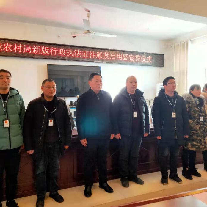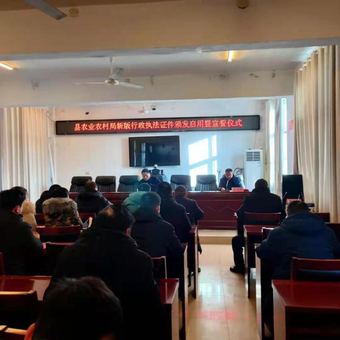 “我鄭重向祖國、向人民宣誓:忠于國家,忠于人民,忠于憲法和法律;堅持執(zhí)法為民,堅持依法行政,維護公平正義;以維護人民群眾利益、維護法律權(quán)威為已任,有法必依,違法必究,認真履行法定職責。”12月31日上午9時,鹿邑縣農(nóng)業(yè)農(nóng)村局在三樓會議室召開新版農(nóng)業(yè)綜合行政執(zhí)法證件頒發(fā)啟用暨宣誓儀式大會。該局局長陳東振為51名執(zhí)法人員辦法了新版行政執(zhí)法證并提出具體要求。副局長丁文杰主持宣誓儀式大會并領(lǐng)誓。