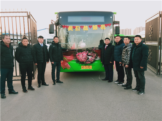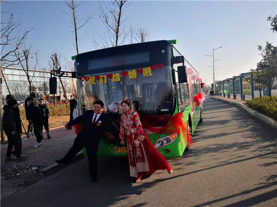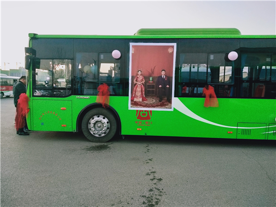 1月1日早上,裝飾一新的6輛迎親公交車吸引了眾人的目光。周口公交一公司19路公交車司機、新郎買亞飛用公交車,迎娶同為公交車司機的新娘裴丹陽,被當(dāng)作婚車的公交車為新能源車,正是新郎和新娘平時駕駛的19路和9路公交車,以及15路公交車。整個婚禮,親朋好友都是乘坐公交車趕往婚禮現(xiàn)場,環(huán)保又有新意。