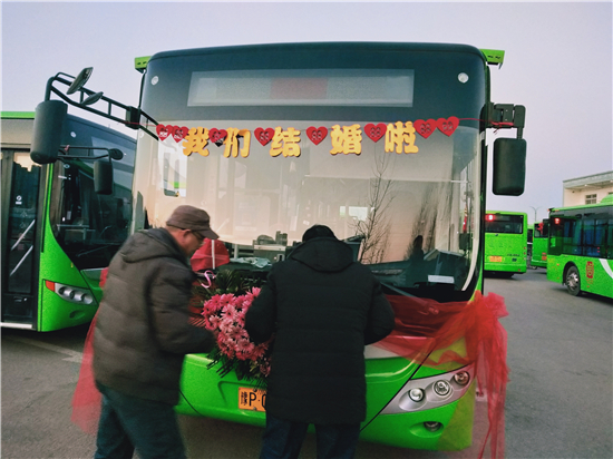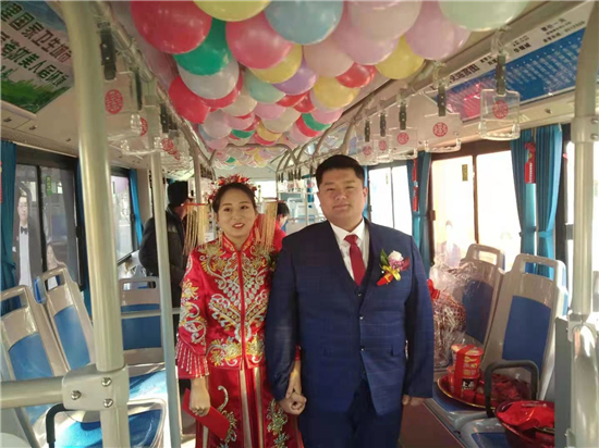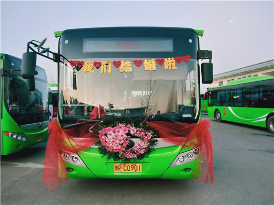 “這個想法是我和我媳婦一起商量出來的。我們覺得別人結(jié)婚都是用婚車,有點千篇一律。我們作為公交人就想另辟蹊徑,用我們公司的公交車當(dāng)婚車,同時也倡導(dǎo)綠色出行,還很有紀念意義?!?新郎買亞飛告訴記者。