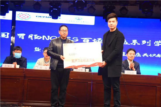 楊雨旺書記介紹了鄲城縣人民醫(yī)院胃腸外科的基本情況以及在近年發(fā)展中取得的長足進步。胡軍紅教授在致辭中指出,NOSES作為一種微創(chuàng)中的微創(chuàng)手術,是一種醫(yī)患共贏的好技術,是未來微創(chuàng)外科發(fā)展的趨勢和方向之一。他對不辭勞苦開展公益學術講座,推廣NOSES理念和技術的各位專家表示感謝,同時預祝系列學術活動圓滿成功。 中國胃腸NOSES聯(lián)盟向鄲城縣人民醫(yī)院贈送了《胃腸手術策略與操作圖解》等專業(yè)書籍20本和超聲刀一套。