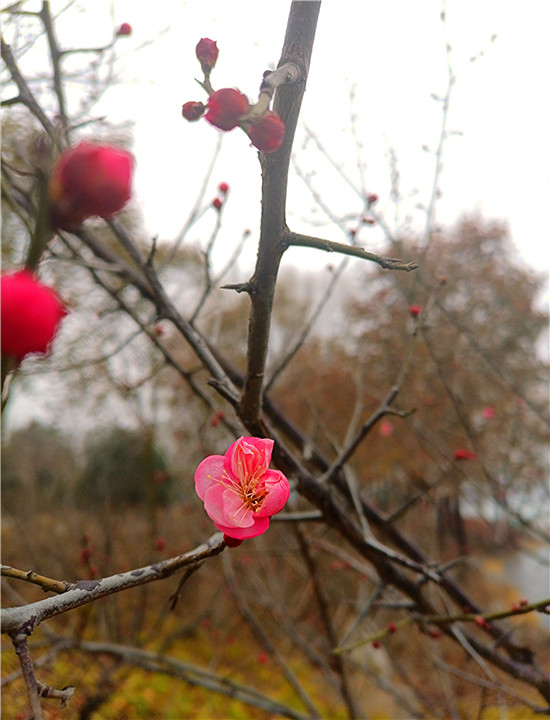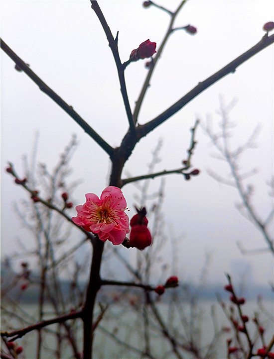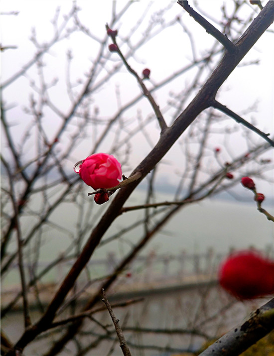 1月25日早晨,我市下了一場(chǎng)小雨。周口公園的梅樹(shù)上,幾朵梅花已經(jīng)綻放枝頭,被雨水滋潤(rùn)過(guò)后的梅花嬌艷,凝結(jié)在梅花上的小水珠晶瑩剔透,讓梅花變得別有一番詩(shī)意。