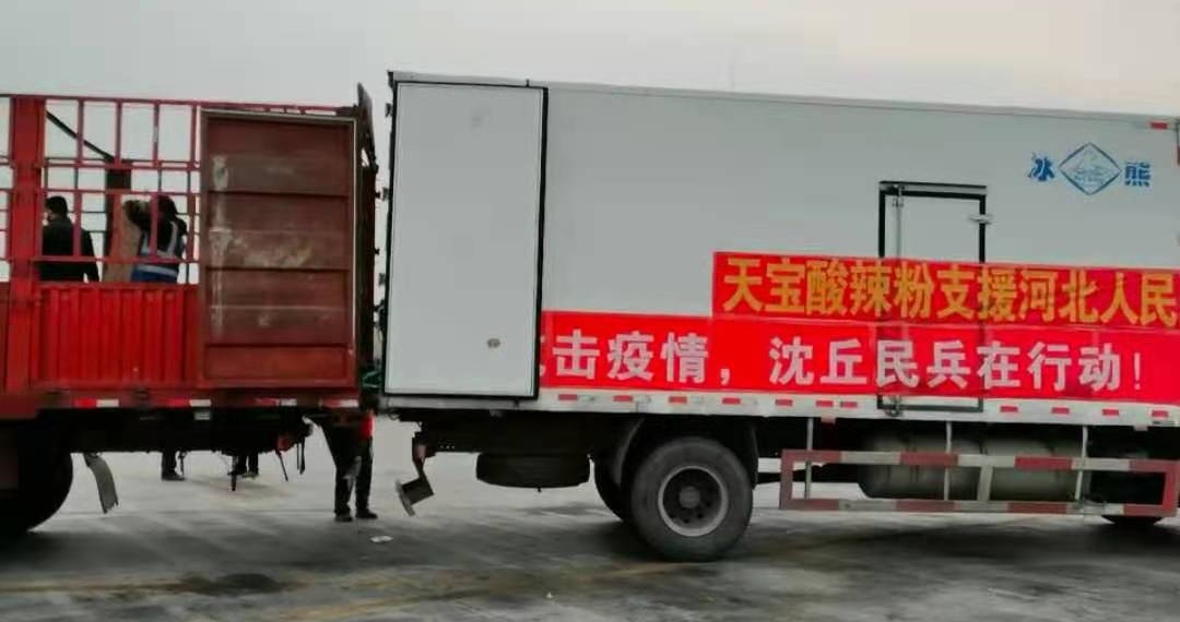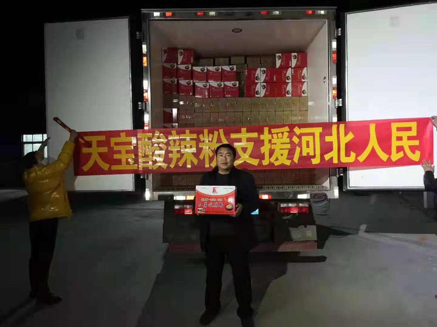 于是,他當(dāng)即與河北省南宮市相關(guān)防疫部門取得聯(lián)系,天宮那邊欣然接受,并表示感謝。1月20日當(dāng)夜,便組織召集村上的“鐵桿工人”連夜加班加點(diǎn)生產(chǎn)了價(jià)值5萬(wàn)元共計(jì)1萬(wàn)盒“天寶酸辣粉”,無(wú)償捐贈(zèng)給河北天宮市,送去來(lái)自沈丘縣中豫天寶食品有限公司的一片愛(ài)心。