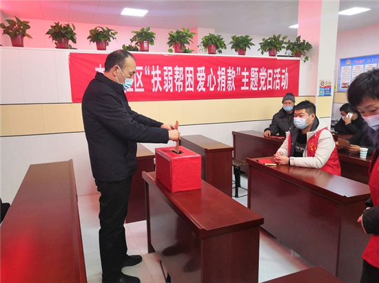 社區(qū)黨員積極響應(yīng),奉獻愛心,很快就捐款9300元?!拔译m然不是黨員,但是看到社區(qū)黨員干部真心為群眾辦實事,我也要通過捐款這種方式盡一點綿薄之力,以實際行動幫助困難群眾?!庇械纳鐓^(qū)群眾聽到消息,特意趕到社區(qū)黨群服務(wù)中心,將捐款交到社區(qū)副主任李春花的手上。