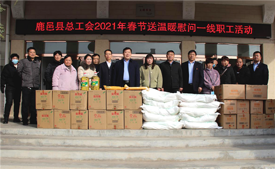 2月1日, 鹿邑縣總工會(huì)組織開展“冬送溫暖”慰問活動(dòng)??h人大常委會(huì)副主任、縣總工會(huì)主席王新民,縣總工會(huì)黨組書記、常務(wù)副主席武超參加活動(dòng),全體班子成員陪同慰問。