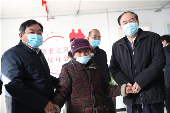 太康縣大許寨格花里行政村居村聯(lián)養(yǎng)點(diǎn)占地5畝,入住特困老人80余人,社會(huì)留守老人3人,老人們?cè)谶@里有吃有穿還有娛樂(lè)活動(dòng),生活得十分幸福。徐濟(jì)超一行走進(jìn)大許寨鎮(zhèn)葛花李居村聯(lián)養(yǎng)點(diǎn),向老人們祝賀新春。徐濟(jì)超指出,各級(jí)各部門(mén)要始終堅(jiān)持以人民為中心的發(fā)展思想,踐行初心使命,聚焦群眾冷暖,用足用好惠民政策,千方百計(jì)幫助群眾解決實(shí)際問(wèn)題,讓群眾老有所養(yǎng)、病有所醫(yī)、住有所居,讓大家共享改革發(fā)展成果,確保讓廣大群眾過(guò)個(gè)歡樂(lè)祥和的新春佳節(jié)。