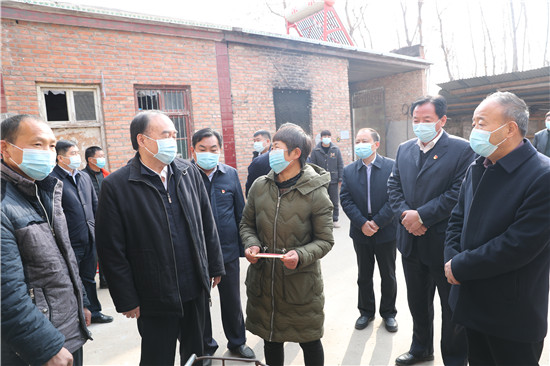 大許寨洪山廟村的張核心,由于家中有兩個(gè)孩子患精神疾病,生活困難。徐濟(jì)超走進(jìn)張核心家中,詳細(xì)詢(xún)問(wèn)了其家庭情況。當(dāng)?shù)弥诋?dāng)?shù)攸h委、政府的幫助下,張核心從事養(yǎng)殖生活得以保障的情況后,徐濟(jì)超叮囑張核心保重身體,堅(jiān)定信心渡過(guò)難關(guān),靠勤勞雙手實(shí)現(xiàn)發(fā)家致富。