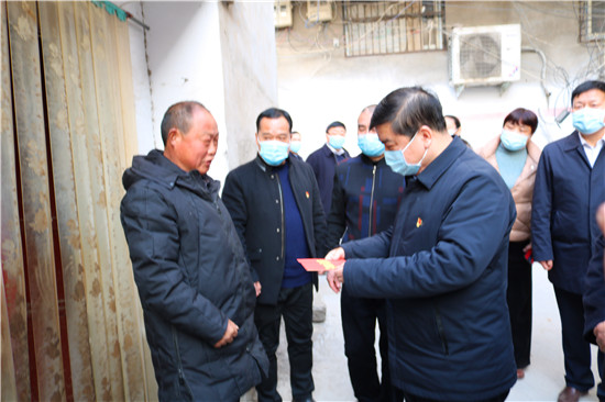 2月2日,在春節(jié)來臨之際,鹿邑縣委書記、縣長李剛帶著掛念和關(guān)懷深入基層,看望慰問困難勞模、困難職工、困難群眾、傷殘軍人代表,向他們致以節(jié)日的問候和美好的祝福,并送上慰問金和慰問品??h人大常委會主任李國際,縣委常委、常務(wù)副縣長陸志杰,縣委常委、縣委辦公室主任侯自峰,縣委常務(wù)、副縣長王曉征,縣委常委、統(tǒng)戰(zhàn)部部長程衛(wèi)東,副縣長楊彩、翟杰、孫自豪,縣政府領(lǐng)導(dǎo)成員王玉超一同慰問。