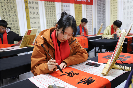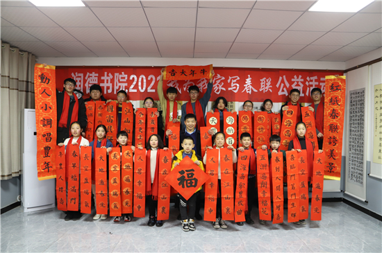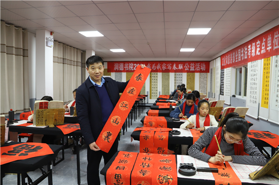 “春聯(lián)是我們中華民族獨(dú)有的文化符號,象征著喜慶,蘊(yùn)含著吉祥。我為我家寫春聯(lián)公益活動具有很強(qiáng)的廣泛性、群眾性、公益性,送祝福、亮成績與弘揚(yáng)傳承中華優(yōu)秀傳統(tǒng)文化相結(jié)合,在學(xué)生心中樹立了文化自信?!标悈顷懶牢康卣f。