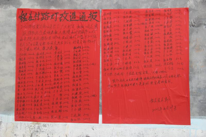 2021年2月3日,周口市商水縣郝崗鎮(zhèn)程莊村的一面墻上的紅紙黑字大字報(bào)吸引了記者的注意,上面密密麻麻地寫著愛(ài)心村民的姓名和捐款金額,經(jīng)走訪村干部得知實(shí)情。