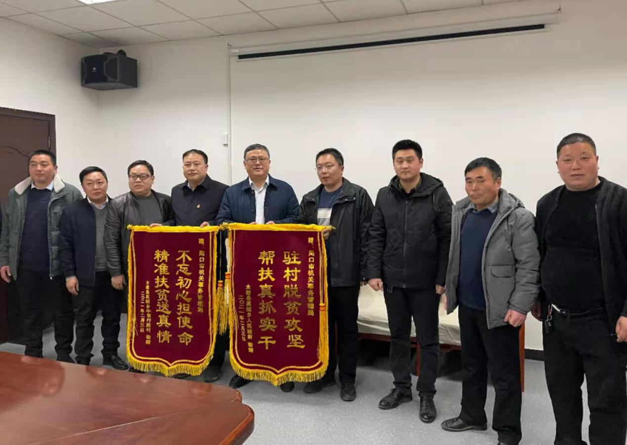 本報訊(記者 竇娜)2月4日,市機關(guān)事務(wù)管理局迎來了一批特殊的客人,該局對口幫扶村——太康縣高朗鄉(xiāng)中黃村黨支部書記黃東體和群眾代表,送來了兩面寫有“不忘初心擔(dān)使命,精準(zhǔn)扶貧送真情”和“駐村脫貧攻堅,幫扶真抓實干”的錦旗,感謝市機關(guān)事務(wù)管理局在幫扶工作中對該村的大力支持和真情關(guān)懷。