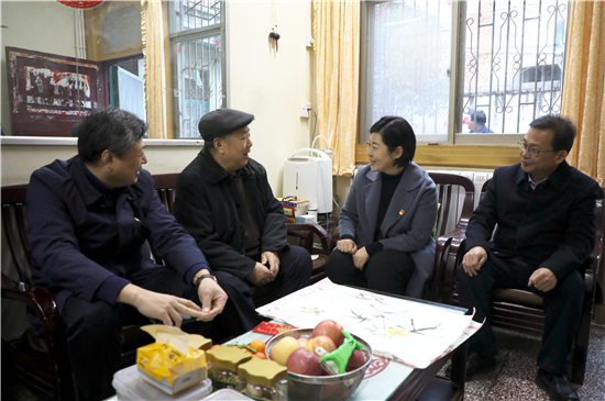 2月7日晚,市人大常委會副主任、鄲城縣委書記羅文閣帶領(lǐng)縣四個班子領(lǐng)導(dǎo)走訪慰問離退休老干部,認真傾聽他們對鄲城經(jīng)濟社會發(fā)展的意見和建議,為他們送去縣四個班子領(lǐng)導(dǎo)對老干部的深切關(guān)懷和新春問候,并祝愿全縣老干部新春愉快,健康長壽。