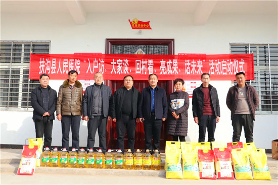 2月8日上午,扶溝縣人民醫(yī)院黨委書記、院長何躍東,副院長徐冰、王月鳳、齊建平,帶著米、食用油等慰問品到曹里鄉(xiāng)刁灣村開展“話脫貧、感黨恩、奮進新時代”主題活動,送去新春的祝福。