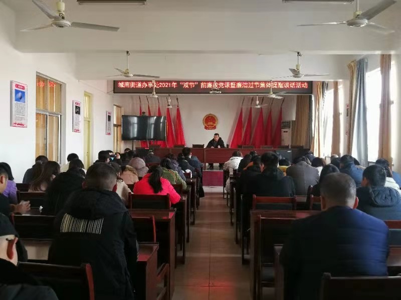 在春節(jié)、元宵節(jié)即將來(lái)臨之際,川匯區(qū)城南街道辦事處開(kāi)展2021年“雙節(jié)”前廉政黨課暨廉潔過(guò)節(jié)集體談話(huà)活動(dòng),要求黨員干部增強(qiáng)廉潔自律意識(shí)、筑牢思想防線(xiàn),確保過(guò)一個(gè)風(fēng)清氣正的“雙節(jié)”。
