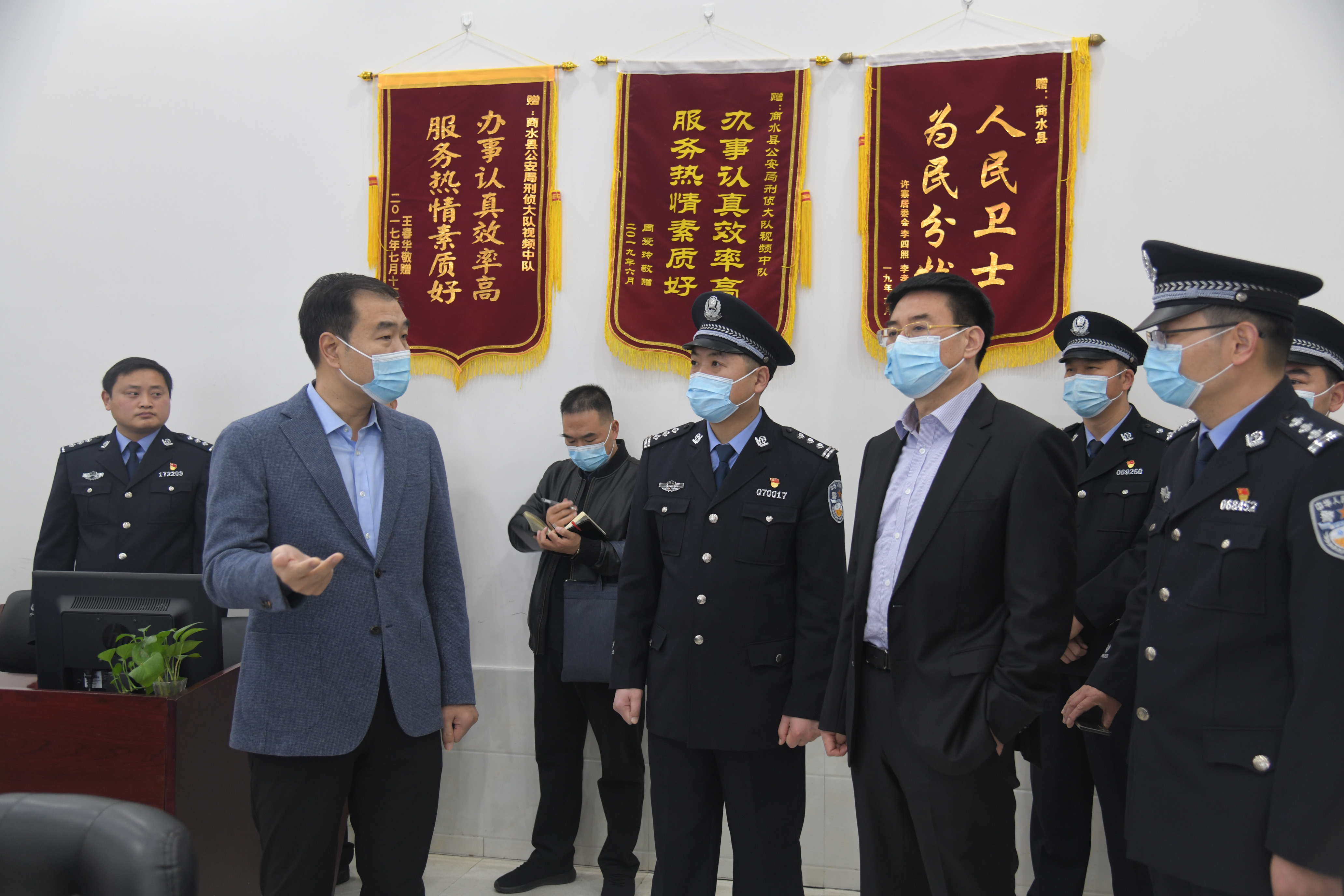 在縣公安局,孔陽、田林與備勤人員一一握手,親切交談??钻栆恍羞€到公安局110指揮中心和合成作戰(zhàn)中心,看望值班人員,對(duì)縣公安局新黨委班子成立以來取得的成績給予充分肯定。他指出,越是在萬家團(tuán)圓的時(shí)候,維護(hù)社會(huì)穩(wěn)定的任務(wù)就越重,希望堅(jiān)守在一線的工作人員繼續(xù)發(fā)揚(yáng)良好的作風(fēng),堅(jiān)守崗位,確保全縣人民過一個(gè)平安祥和安全的春節(jié)。