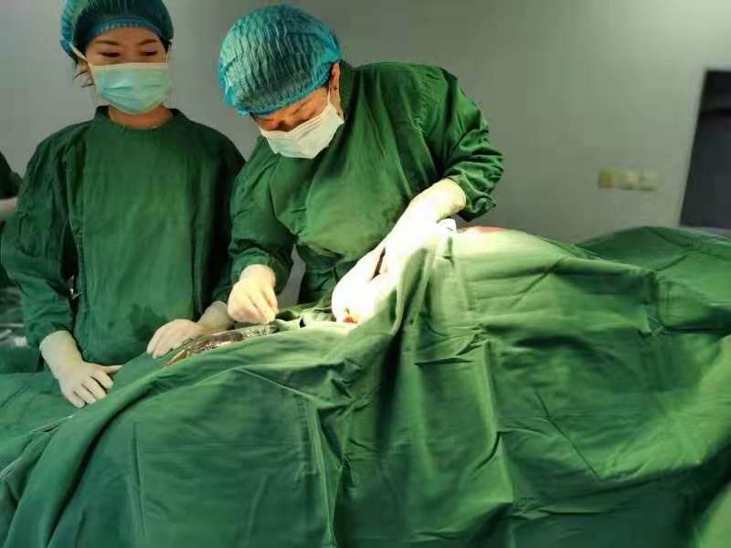 另一方面,病人家屬因缺乏相關醫(yī)學常識,似乎意識不到事情的嚴重性。楊秀麗更是心急如焚,但仍耐心溝通,確保最短的時間,最佳的速度,做好術前一切準備。同時,楊秀麗又電話通知新生兒科值班醫(yī)生做好搶救新生兒的準備。難度太大,病人體重過重,加之病情復雜,情況緊急,手術室主任時慶祥親自上臺進行麻醉,產(chǎn)二科楊秀麗親自主刀手術。