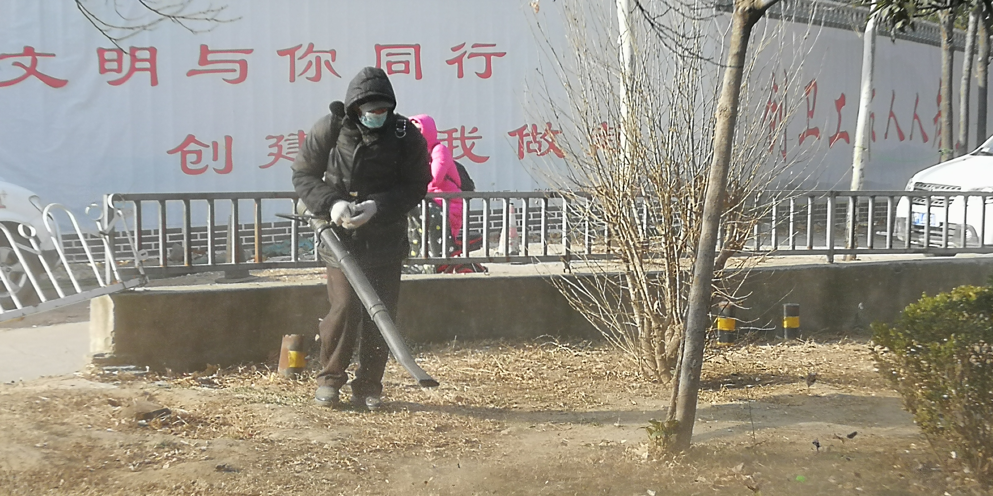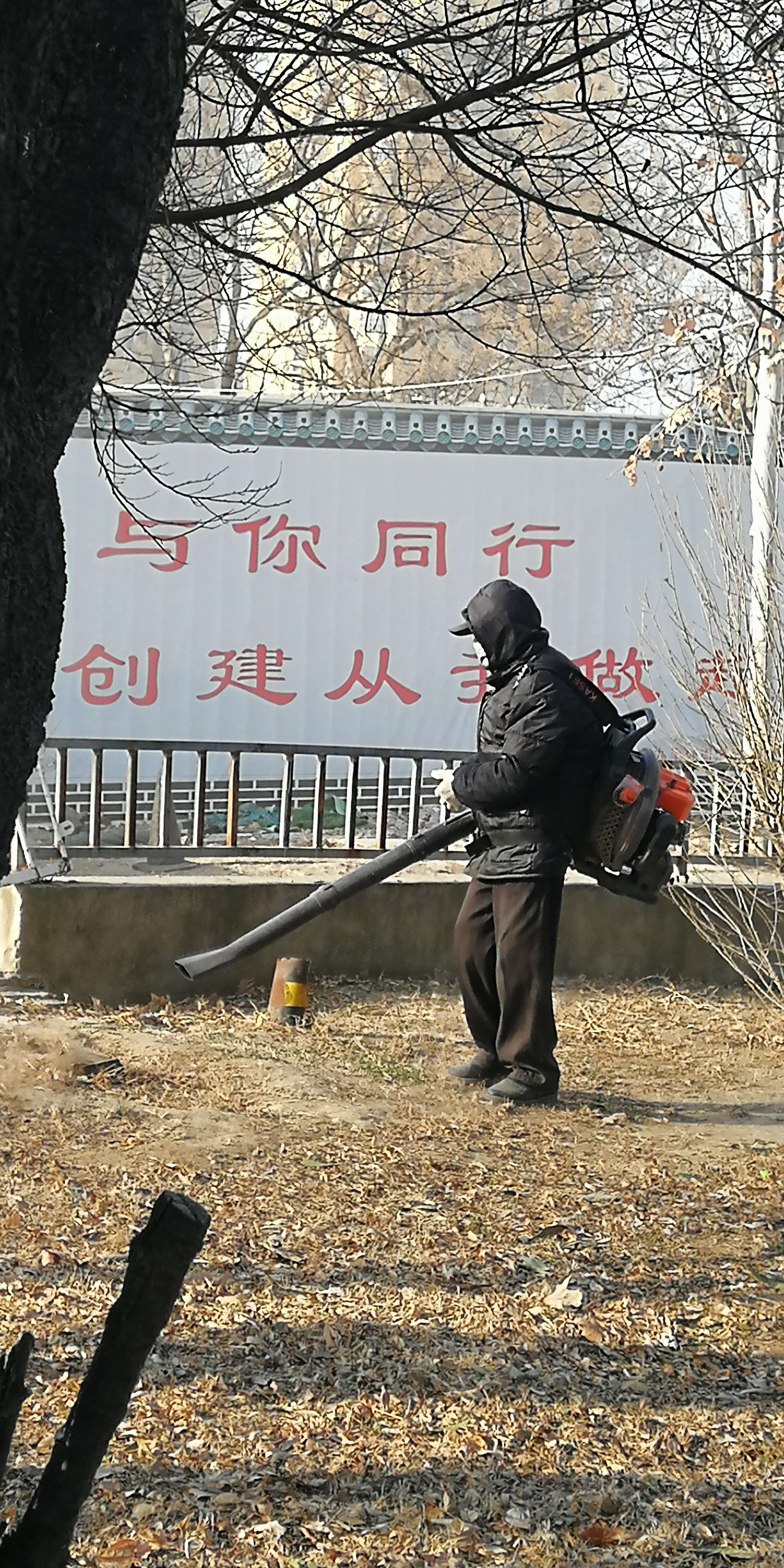 2月11日,大年三十。在川匯區(qū)濱河路上,工作人員背著吹風機清理游園內的落葉和垃圾。工作人員介紹,這樣便于更快更好地工作。(周口日報·周道客戶端記者 馬月紅)②7