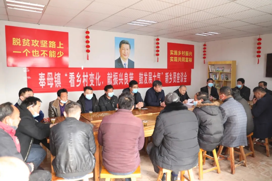 匯聚眾人之力才是發(fā)展之力,凝聚眾人智慧才是最高智慧。春節(jié)之際,奉母鎮(zhèn)黨委為進一步調(diào)動鄉(xiāng)賢的積極性和創(chuàng)造性,共同探討家鄉(xiāng)的發(fā)展與建設(shè),最大限度贏得鄉(xiāng)賢對家鄉(xiāng)發(fā)展的支持和反哺,有效推動資金回流、項目回歸、信息回傳、人才回鄉(xiāng),集發(fā)展“錦囊妙計”,匯聚助推鄉(xiāng)村振興的新力量,特意把七二村的“看鄉(xiāng)村變化,獻振興良策,鼓發(fā)展士氣”新鄉(xiāng)賢座談會會場布置到“鄉(xiāng)村大食堂”。奉母鎮(zhèn)黨委書記陳鵬、武裝部長胡波濤參加座談會。陳鵬作了講話。