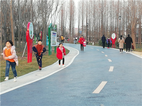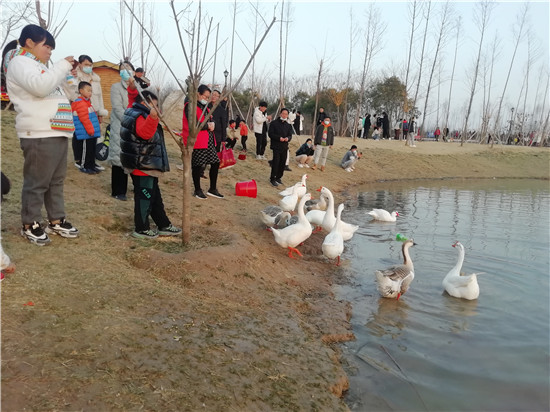 春節(jié)期間,陽光燦爛,眾多市民呼朋引伴選擇近郊游。新落成的淮陽梅園每天迎來成群結(jié)隊(duì)的市民。這里臘梅等花樹次第開放,湖水澄清,大白鵝引頸高歌,還有精致的木質(zhì)棧橋等,一步一景,成為人們休閑游玩的好去處。記者 侯俊豫 攝