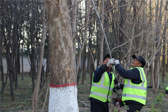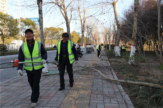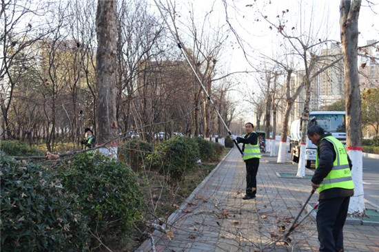 2月21日,城鄉(xiāng)一體化示范區(qū)城管局幾名市政管理人員在修剪周口大道兩旁的行道樹。據(jù)了解,通過一年的生長,行道樹衍生了許多無用枝條,如果對這些無用枝條不進行修剪,勢必影響今年的長勢。目前,道路兩邊的行道樹開始發(fā)芽,正是一年當中修剪的有利時機。城鄉(xiāng)一體化示范區(qū)城管局每天出動三班技術人員,對轄區(qū)內的行道樹進行修剪。