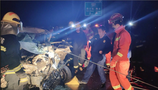 2月21日19時許,大廣高速周口段2064KM附近發(fā)生一起交通事故,大貨車沖破護欄與對向車道內(nèi)的兩輛私家車發(fā)生碰撞,司機和一名5歲女童被困車中。接到報警后,民警、消防、醫(yī)護人員迅速趕到現(xiàn)場開展救援,20時39分兩人被救出并接受進一步治療。