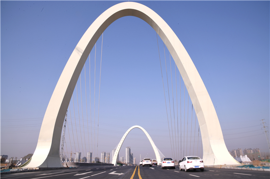 遠(yuǎn)遠(yuǎn)望去,松花江路跨幸福河大橋宛如大鵬展翅欲飛。據(jù)了解,大橋設(shè)計寓意為“沖出云霄”,橋體以現(xiàn)代無脊索斜拉橋作為裝飾構(gòu)件,橋梁主塔+拉索造型恰如振翅高飛的雄鷹,有著“大鵬一日同風(fēng)起,扶搖直上九萬里”的象征意義,表示周口市正蓄勢待發(fā),抓住機(jī)遇,一飛沖天,加入全國城市發(fā)展的快車道。③5