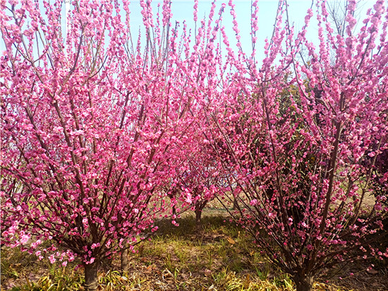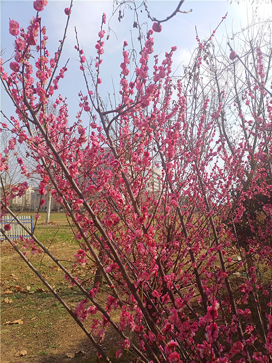 梅花,自古以來就是文人墨客筆下的??汀S性娫疲骸按猴L試手先梅蕊,頩姿冷艷明沙水?!泵坊軌蛄韬㈤_,兼具冷艷和嬌媚,被譽為花中四君子之首。近日,我市天氣晴好,公園內(nèi)、道路旁,一樹樹梅花開的熱熱鬧鬧、密密匝匝,令人感受到濃濃的春意和無盡的美好。