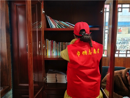 上午9點(diǎn),天空中偶有零星小雨,市民驛站里卻有幾位市民正在這里讀書,古色古香的書柜,整齊地?cái)[放著各類書籍,文學(xué)、百科、養(yǎng)生書籍俱全。周口市慈孝文化促進(jìn)會的志愿者每天都在值班,隨時打掃衛(wèi)生,為市民提供力所能及的幫助。