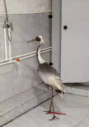 2月24日,鄲城縣吳臺鎮(zhèn)村民在田地里干活時,發(fā)現(xiàn)一只“大鳥”,身體虛弱的趴在地里不能飛行,村民看著這只大鳥一雙腿非常長,像是丹頂鶴,他不敢怠慢,立刻撥打救助電話,鄲城縣自然資源局接到救助電話后,局長楊玉民、分管副局長李北斗高度重視,立即指派鄲城縣森林公安局及野生動植物保護(hù)和自然保護(hù)地管理股工作人員前往救助。經(jīng)周口市野生動物救助中心工作人員現(xiàn)場觀察初步鑒定后認(rèn)為,這是一只白枕鶴,屬于國家一級保護(hù)珍禽。據(jù)百度了解:白枕鶴(學(xué)名:Grus vipio)體形與丹頂鶴相似,略小于丹頂鶴,而大于白頭鶴。上體為石板灰色。尾羽為暗灰色,末端具有寬闊的黑色橫斑。世界白枕鶴數(shù)量稀少,種群僅存不足5000只,白枕鶴棲息于開闊的平原蘆葦沼澤和水草沼澤地帶,也棲息于開闊的河流及湖泊岸邊,以及鄰近的沼澤草地,有時出現(xiàn)于農(nóng)田和海灣地區(qū),尤其是遷徙季節(jié)。村民發(fā)現(xiàn)的這只白枕鶴可能就是在遷徙過程中受傷才從空中掉落。