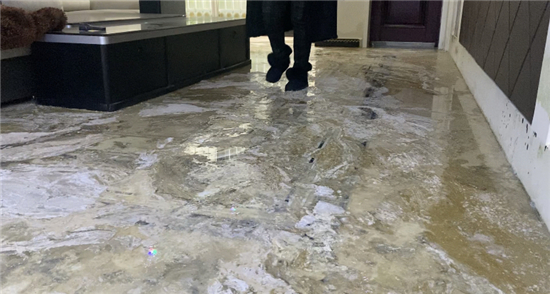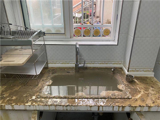 看著精心裝修的房子,被下水道的污水浸泡了每個角落,新買的家具被泡,墻體被污水肆意的畫成“涂鴉”。看到尚未入住的新房這般“慘烈”模樣,石女士氣不打一處來?!罢l能想到下水道里的污水能從洗碗池里溢出來啊,污水隨著地板的縫隙滲入了地板下面,前3次出現(xiàn)這種情況后,屋里已經(jīng)不成樣子,為了孩子結婚,這又重新裝修了一邊,家具也是剛換的,又被污水浸泡了,這都是第4次了,每次的損失都是我自己承擔的?!笔繗鈶嵉卣f。