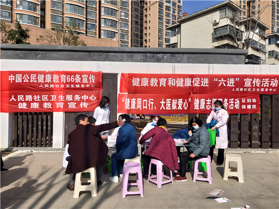 3月2日下午,在大慶路與七一路交叉口東北角的街頭游園內(nèi),人民路社區(qū)衛(wèi)生服務(wù)中心在這里開(kāi)展健康教育和健康促進(jìn)“六進(jìn)”宣傳活動(dòng)?;顒?dòng)現(xiàn)場(chǎng),量血壓、測(cè)血糖、免費(fèi)體檢等服務(wù),讓周邊居民體會(huì)到滿滿的關(guān)懷。