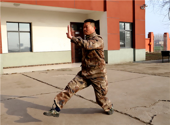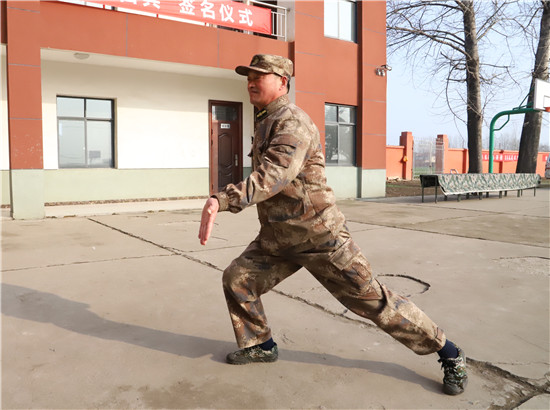 “班長王不老,向班長王學習。好!”準新兵們抱以雷鳴般的掌聲。掌聲未息,王成華虎虎生風地打了一套軍旅拳:弓步沖拳、虛步砍肋、穿喉彈踢……擋擊絆腿、轉身別臂、擊腰鎖喉……每一個動作都顯得那么的到位,整套下來剛勁連貫、豪情奔放,王成華大氣不喘。