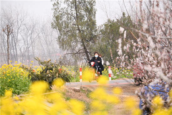 近日,盡管天氣乍暖還寒,沙潁河周口上游段油菜花已競相開放。蜿蜒碧水兩畔,金黃色的油菜花燦如錦緞。輪渡行進(jìn)在碧水和花錦之間,如走進(jìn)畫廊。②8