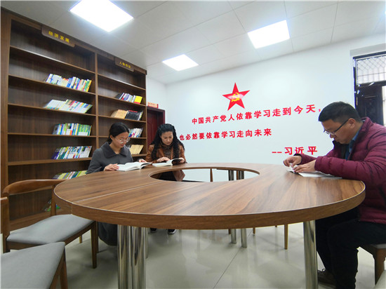 3月10日午飯過(guò)后,西華縣遲營(yíng)鎮(zhèn)財(cái)稅所工作人員馮艷偉、人大代表聯(lián)絡(luò)站工作人員邵楓然、黨政辦工作人員賈斐三人不約而同來(lái)到政府大院二樓剛剛升級(jí)改造完成的遲營(yíng)鎮(zhèn)黨校“黨建書(shū)吧”,坐在一起讀起黨史來(lái)。
