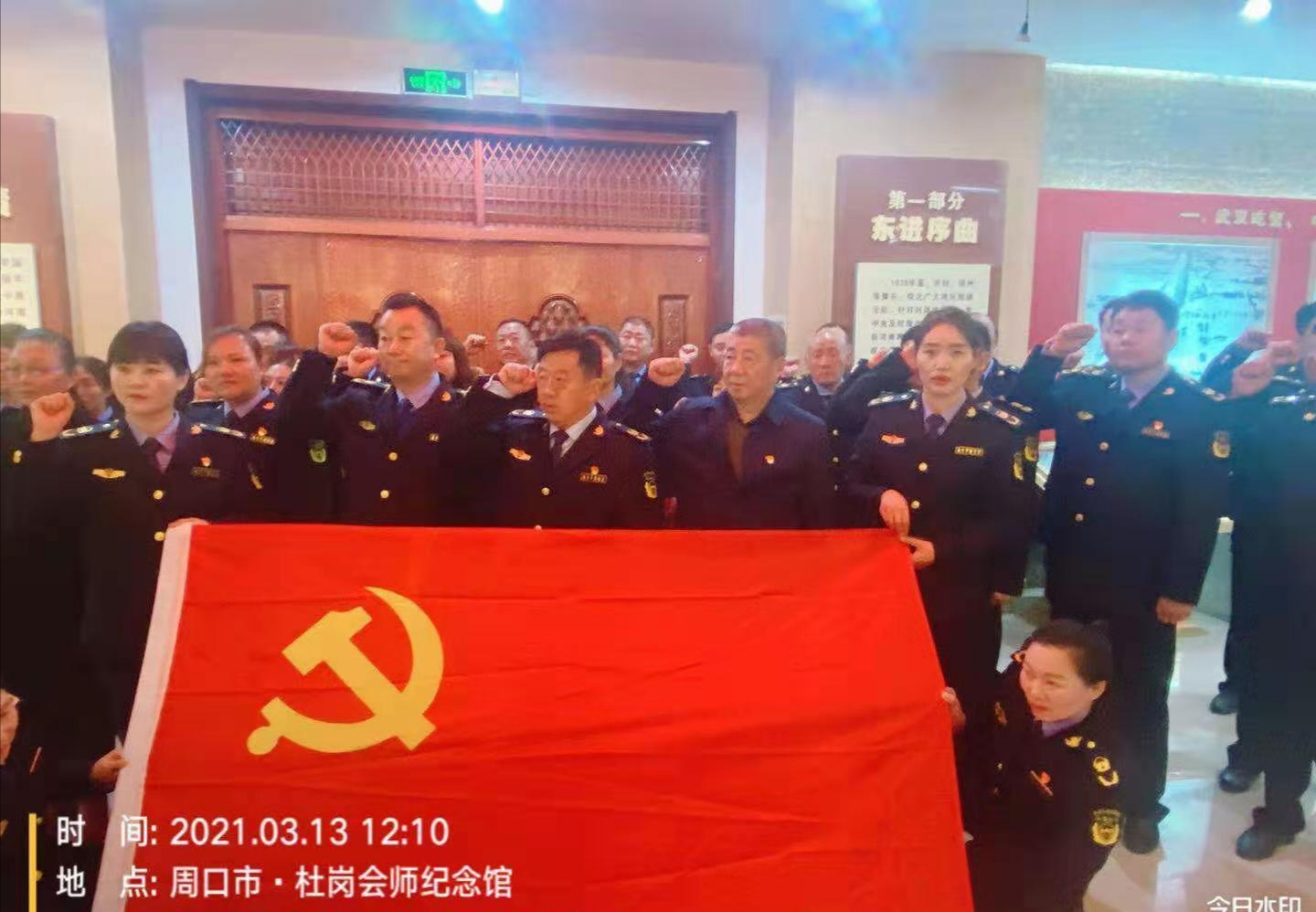 在杜崗會(huì)師紀(jì)念館,管理員朱建璽用樸實(shí)的話語(yǔ)為分局全體中層干部上了一堂生動(dòng)的黨課。分局黨組書(shū)記李紅旗和參加教育活動(dòng)的全體人員在一塊塊展板前深情駐足,認(rèn)真聆聽(tīng)管理員的講解,接受革命洗禮。面對(duì)革命先烈一次次豐功偉績(jī),全體人員再次舉起右手,重溫入黨誓詞,他們莊嚴(yán)宣誓,鏗鏘有力,堅(jiān)決用實(shí)際行動(dòng)奮進(jìn)新征程。