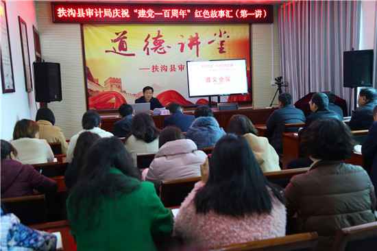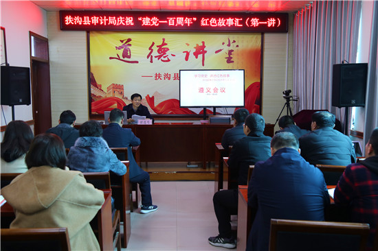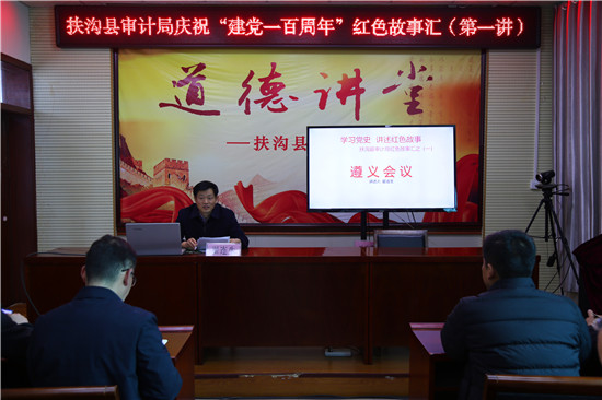 “遵義會議結(jié)束了王明左傾機(jī)會主義路線在黨中央的統(tǒng)治(4年),確立了以毛澤東為代表的新的中央正確領(lǐng)導(dǎo)。在中國革命的危急關(guān)頭,挽救了黨,挽救了紅軍,挽救了中國革命,是我黨歷史上一個(gè)生死攸關(guān)的轉(zhuǎn)折點(diǎn)?!?月15日,扶溝縣審計(jì)局黨史學(xué)習(xí)教育“紅色故事匯”開講了,局長翟連生主講,局機(jī)關(guān)全體黨員干部參加了學(xué)習(xí)。