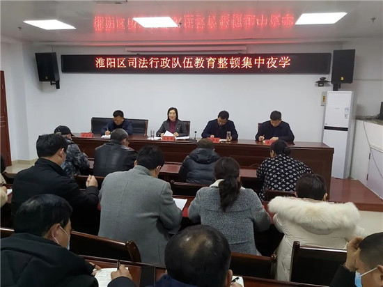 近日,淮陽區(qū)司法局開展司法行政隊(duì)伍教育整頓集中夜學(xué)。區(qū)司法局領(lǐng)導(dǎo)班子全體成員,局機(jī)關(guān)以及18個(gè)司法所全體人員參加集中夜學(xué),局黨組書記、局長段志偉主持學(xué)習(xí)會。