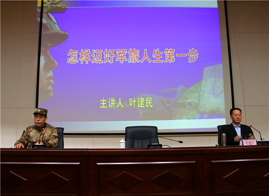 授課中,葉建民教授結(jié)合當前國際國內(nèi)形勢和自身經(jīng)歷,深刻剖析了強國強軍的重要意義。為即將參軍入伍的“準新兵”,如何端正入伍動機、適應(yīng)部隊生活、弘揚尚武精神、立志軍營建功立業(yè),指明了前進方向。葉教授整個授課見解獨到、分析透徹,語言精彩、內(nèi)涵深刻,讓人深受啟發(fā)、獲益匪淺,授課過程中多次爆發(fā)熱烈的掌聲。
