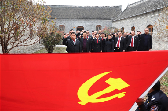 戰(zhàn)爭的硝煙早已散去,烈士的英名與浩然正氣長存。在吉鴻昌將軍的塑像前,朱仲文領(lǐng)誓,全體干警面對鮮紅的黨旗莊嚴宣誓,重溫入黨誓詞。