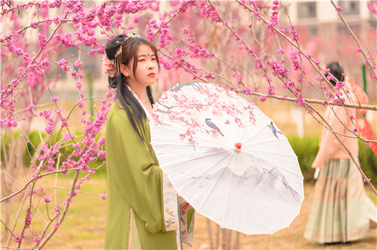 活動(dòng)期間,漢服愛好者身著各種款式的漢服,長衫、褙子、曲裾、襦裙,宛若一幅歷史長卷華麗鋪開,再一次展現(xiàn)出泱泱中華的傳統(tǒng)文化和歷史底蘊(yùn)。開始時(shí),他們在人民公園大門口跳起了中國風(fēng)舞蹈,隨后又三五成群地在公園內(nèi)游玩,吸引了不少市民圍觀。