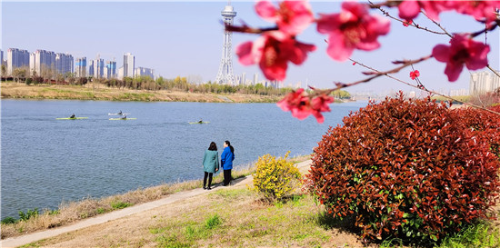 近日,在春花和藍(lán)天碧水映襯下,沙潁河兩岸桃花、海棠、石楠、櫻桃花競(jìng)相綻放,沙潁河兩岸美如畫。