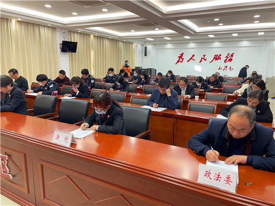 3月25日,川匯區(qū)舉行政法隊伍教育整頓知識競賽活動。競賽采取“雙隨機”的形式,在區(qū)委政法委機關、區(qū)法院、區(qū)檢察院、區(qū)公安分局、區(qū)司法局隨機各挑選6名人員進行組隊,隨機抽取考題開展競賽。測試考卷共計36道試題,考試時間為40分鐘。區(qū)委常委、政法委書記李祥生主持競賽測試。測試采取閉卷的方式,并進行全程錄像。考試結束后,區(qū)紀委監(jiān)委、區(qū)委組織部相關負責人現(xiàn)場改卷,現(xiàn)場公布成績,現(xiàn)場通報頒獎。