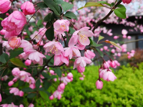“等閑識得東風(fēng)面,萬紫千紅總是春?!苯眨ù蟮匕倩ㄊ㈤_,海棠花、桃花、紫荊花、連翹花……盛開的花朵色彩繽紛、美不勝收,濃濃的春意掛滿枝頭,令人流連忘返。
