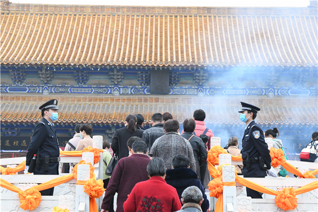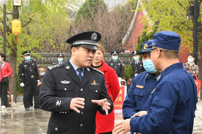 在太清宮、明道宮景區(qū)主要活動點,全力做好人流、車流疏導(dǎo)和受理報警求助等工作;執(zhí)勤民警還及時為走失兒童家長、行動不便的老人等提供熱情周到的服務(wù);民輔警積極向過往香客宣傳“金鐘罩”防詐騙知識,耐心細致地手把手教群眾注冊“金鐘罩”;交警大隊根據(jù)職責(zé)任務(wù)設(shè)置了駐地警衛(wèi)組、機動應(yīng)急組、事故應(yīng)急組,大隊領(lǐng)導(dǎo)靠前指揮,因情施策,合理調(diào)度,全力保障活動現(xiàn)場道路交通安全暢通。③2