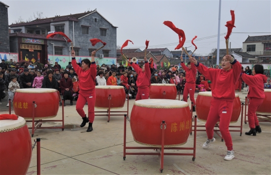 4月6日上午,商水縣黃寨鎮(zhèn)王潭行政村腰鼓隊(duì)在村文化廣場(chǎng)排練節(jié)目。該村近日利用清明節(jié)外出返鄉(xiāng)人員增多的機(jī)會(huì)成立鄉(xiāng)賢會(huì),組織捐款20多萬(wàn)元,作為鄉(xiāng)村振興基金,專(zhuān)項(xiàng)用于村內(nèi)環(huán)境整治、扶弱濟(jì)困、文化娛樂(lè)等。受到資助的村腰鼓隊(duì)成員表示,要繼續(xù)打好鑼、擂響鼓,助力鄉(xiāng)村振興。周口日?qǐng)?bào)·周道客戶(hù)端記者 付永奇 攝