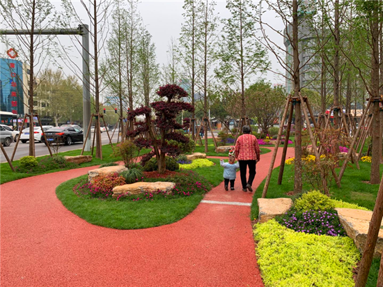 “風(fēng)景真是太美了,咱們坐這兒歇會吧?!?月7日一大早,園里就熱鬧起來,有蹣跚學(xué)步的孩童,有鍛煉身體的中年人,也有互相攙扶依偎的老人。自打游園開放后,市民李大媽成了這兒的常客,“瞅空就帶著小孫子來這兒玩?!本G化帶一夜間“變身”,讓過往市民贊嘆不已,大家的幸福感、獲得感進一步增強。
