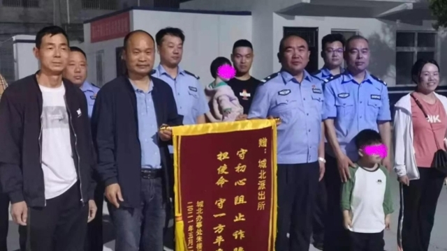 5月26日,城北辦事處朱樓村6名村民一起前往城北派出所,送上一面繡有“守初心阻止詐騙 擔(dān)使命守一方平安”鮮紅錦旗。