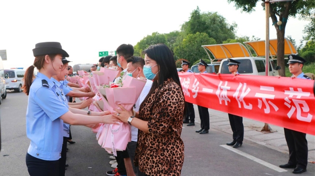 5月29日,周口市公安局城鄉(xiāng)一體化示范區(qū)分局在大廣高速周口東出站口舉行儀式,熱烈歡迎輾轉(zhuǎn)萬里偵破電信詐騙的專案組民警凱旋,經(jīng)過專案組多日晝夜奮戰(zhàn),11名涉案犯罪嫌疑人被成功押解回周口。